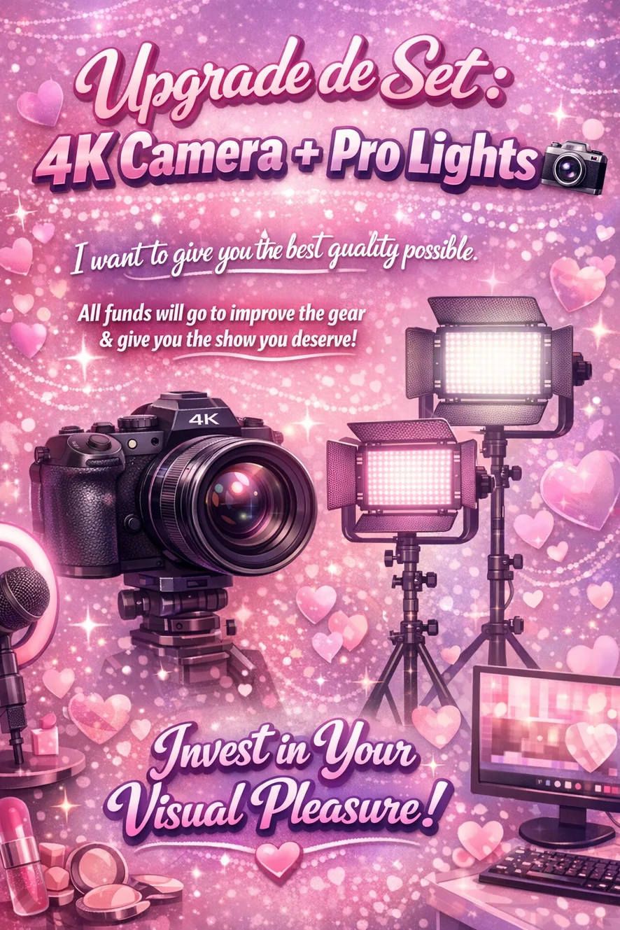 Cámara 4K + Luces Profesionales 📸 Quiero que me veas con la mejor calidad posible.🥰 Todo lo recaudado será destinado a mejorar el equipo y brindarte el show que te mereces. Invierte en tu placer visual💗🥰